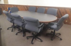 We charge $20/hour for the boardroom rental.  The room can accommodate meetings of up to 50 people with chairs in rows and a row of tables at the front of the room.  With tables, a boardroom style layout will accommodate up to 30 people and in a classroom layout, will accommodate up to 32 people.